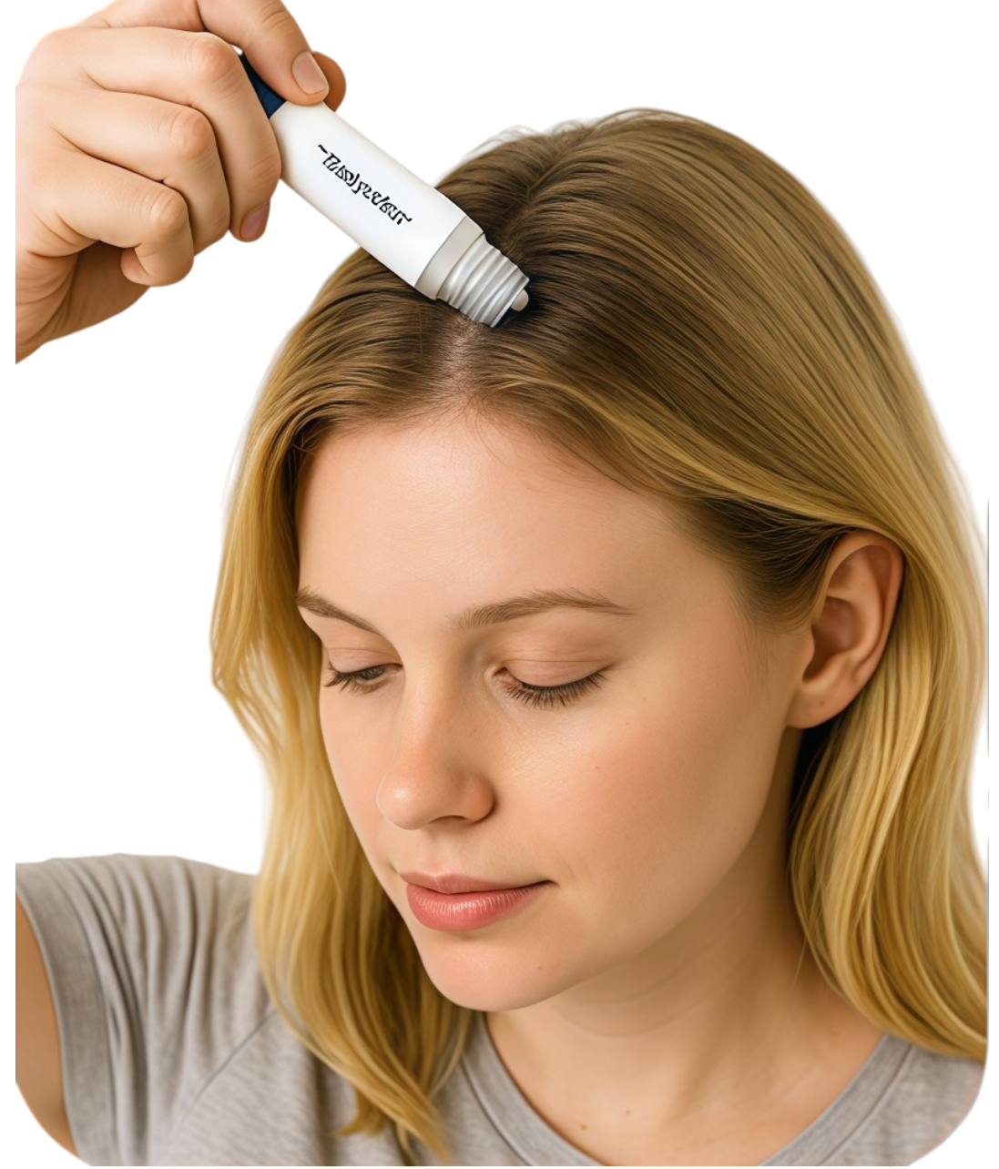 Use the roll on applicator to massage over the entire scalp for 2 mins, twice daily.